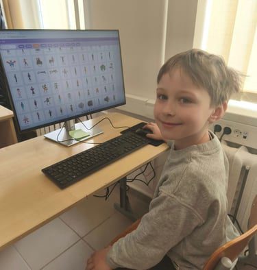 Mokinys džiaugiasi pamokos rezultatu.